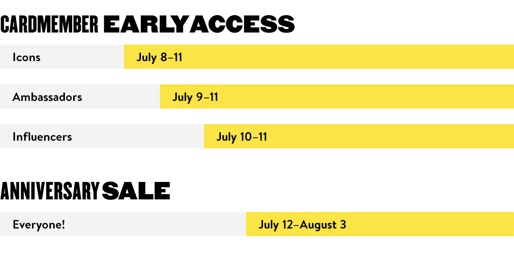 Nordstrom Cardholders can shop Early Access starting July 8th depending on your status!! How do you find our what your status is at Nordstrom?? Go to Nordstrom.com, sign in, click on Your Account then click on Nordy Club to determine if you are an Icon, Ambassador, or Influencer! Then you will know exactly when you can shop!