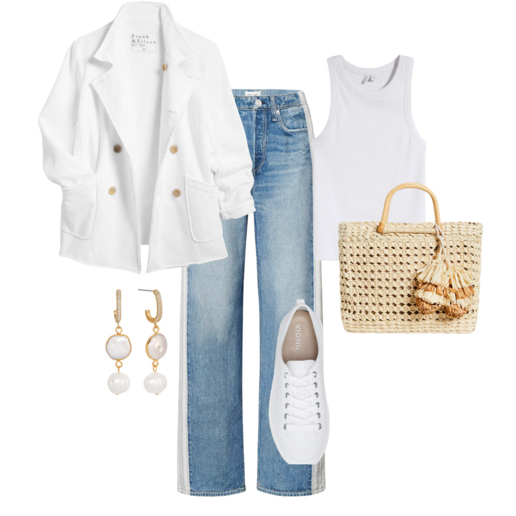 Blazer / Earrings / Jeans / Tee / Bag / Shoe