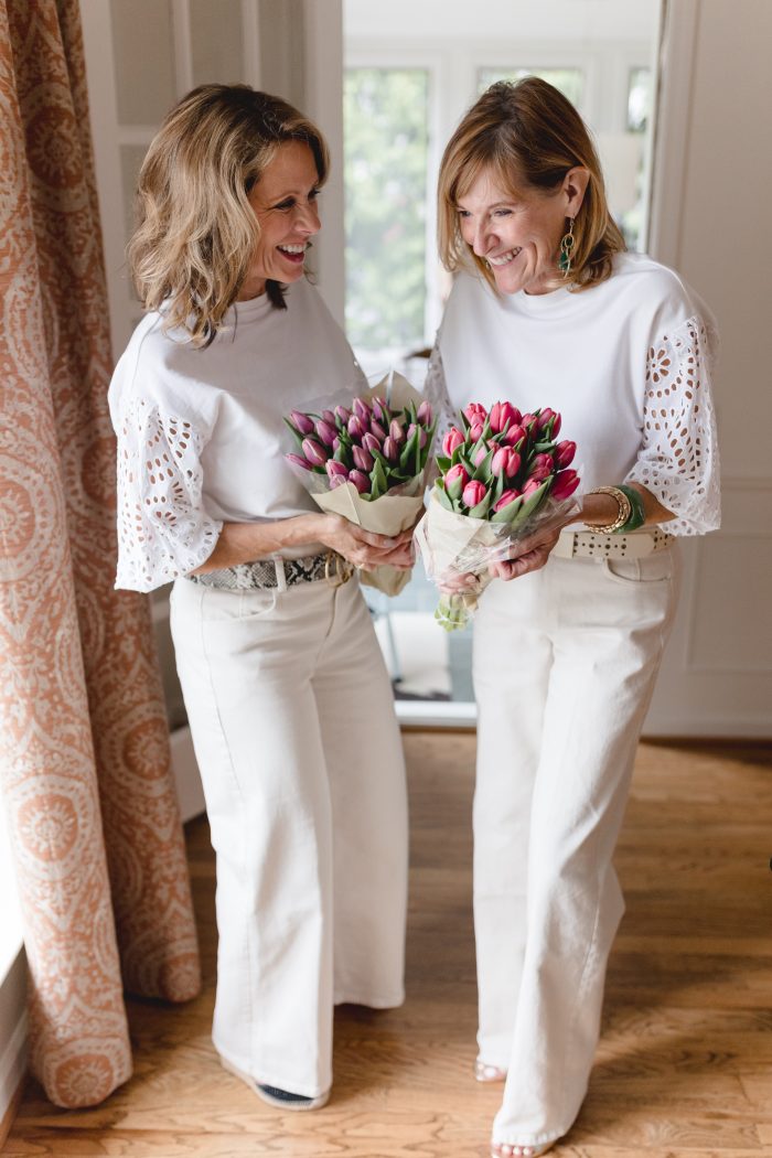 We both have completely different figures which makes shopping together so fun. Some of the denim Bev looks great in is not flattering on Val. Here are our differences…Bev is 5’6 and Val is 5’5…doesn’t seem like much of a difference but it is. Bev’s legs are really long and Val’s not so much. Val’s waist is smaller and she has a more curvier frame where Bev has a more rectangular shape with more waist. We hope this helps when you are looking through our choices in determining what denim would be the best for you!